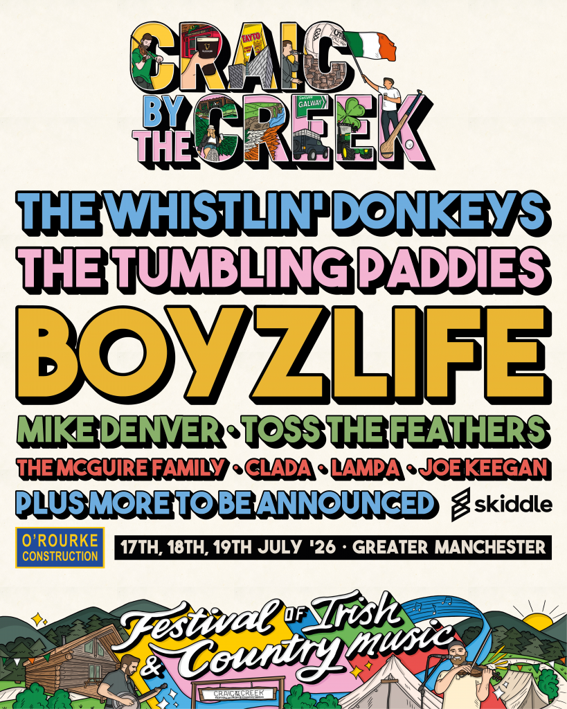 We are delighted to share the first phase of our line-up for next summer’s Craic by the Creek festival, which will take place on the 17th, 18th, & 19th July in Greater Manchester!